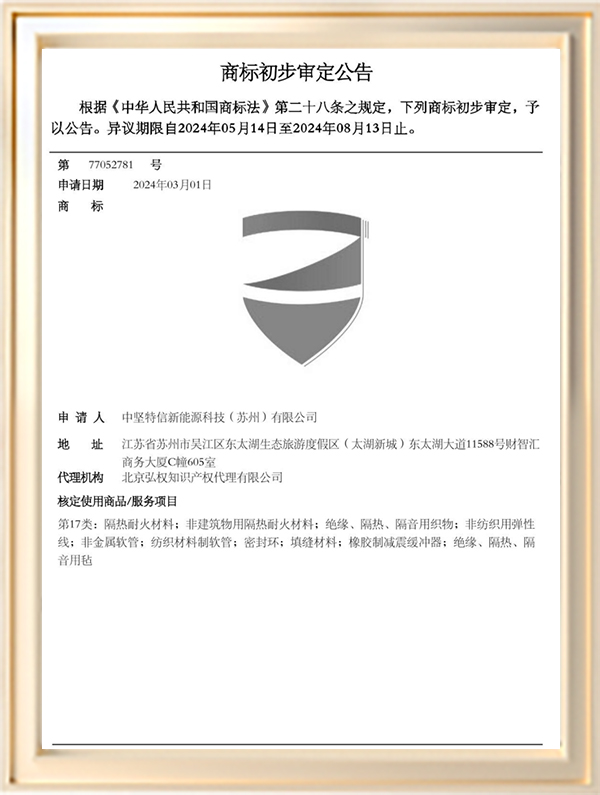 中堅特信新能源科技(蘇州)有限公司是由蘇州科技大學材料學院的技術骨干和天鼎源創公司以及中堅新能源合伙企業發起成立的,致力于新能源汽車和儲能電站的阻燃防護,以技術進步最大程度的保證生命和財產安全。公司聯合蘇州科技大學材料學院唐院士團隊和天鼎源創公司重大創新團隊進行新材料的開發,創造出耐1000℃及以上的耐高溫隔熱阻燃非金屬柔性材料,2A級生態滅火劑,A1級納米陶瓷復合隔熱板以及高燃值火災防控隔斷,在新能源火災防護領域用途廣闊。